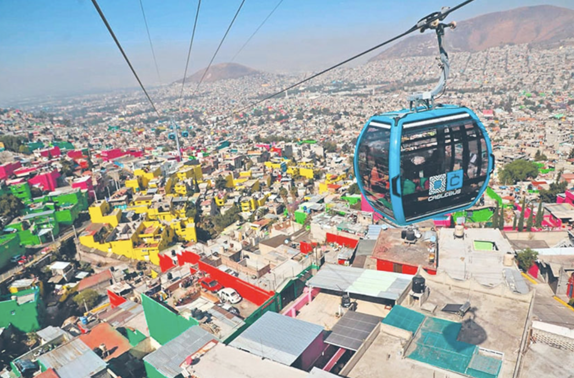 Primero, al manejar del estado a la Ciudad de México, noté el Cableblus, que se inauguró en 2019. El Cablebus es un sistema de transporte por teleférico que da servicio a comunidades de bajos niveles de ingresos y para disminuir el tiempo de traslado en ciertas partes de la ciudad. Hay planes para expandir el servicio. Este teleférico no es el primero en el país. En 2016, el Estado de México creó el Mexicable para reducir los tiempos de viaje de varios municipios del estado.