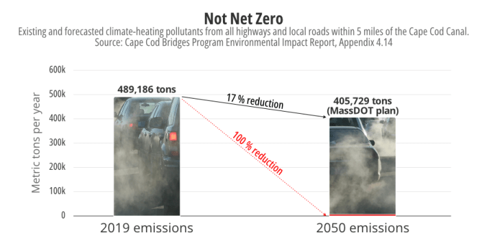 But according to the project's environmental filings, the Cape Cod Bridges and nearby roadways will continue to be shrouded in a thick haze of tailpipe pollution by 2050.
