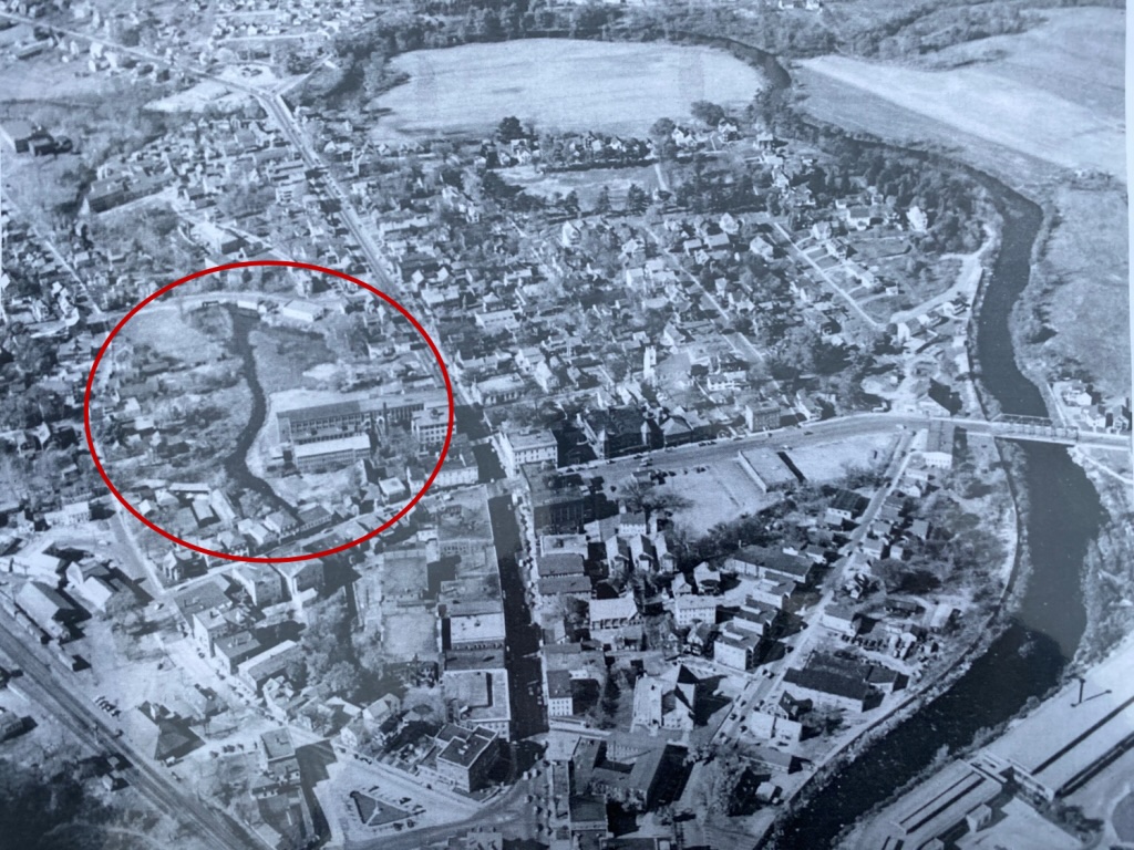 “The stream was put into in a giant culvert sometime in the 1960s,” explains Eric Smith, the Town of Athol’s Director of Planning and Community Development. “It was just like the song, ‘they paved over paradise and put in a parking lot.'”